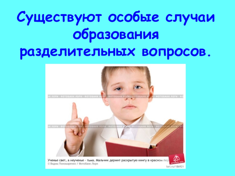 Слайд 13Существуют особые случаи образования разделительных вопросов.