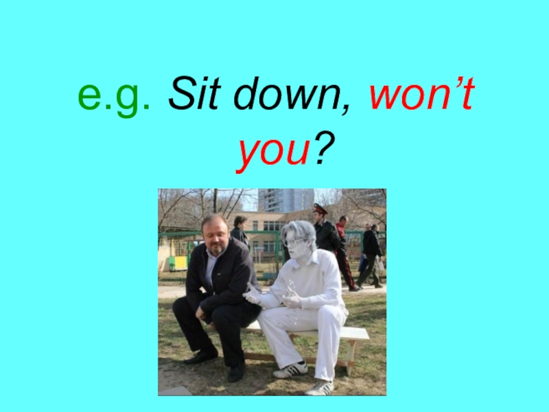 Слайд 20e.g. Sit down, won’t you?