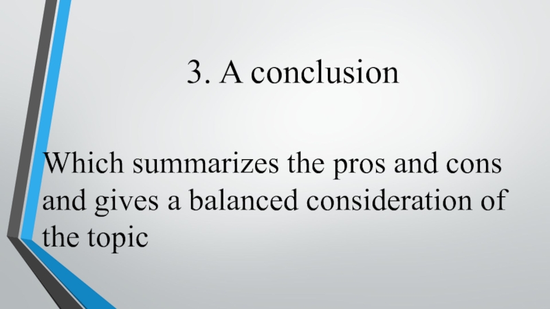3. A conclusionWhich summarizes the pros and cons and gives a balanced consideration of the topic