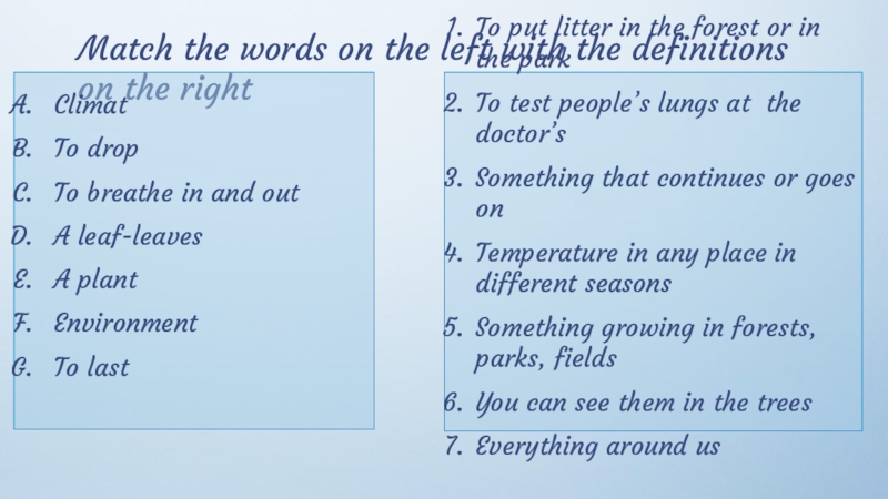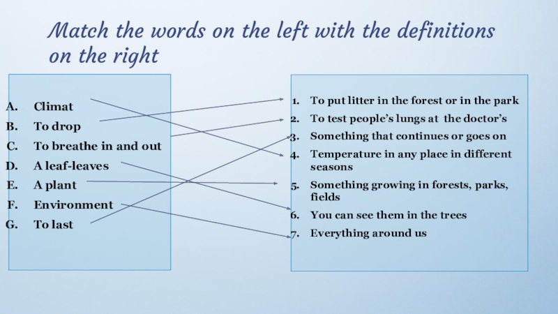 Слайд 29Match the words on the left with the definitions on the