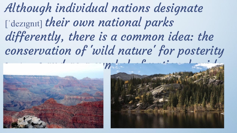 Слайд 12Although individual nations designate [ˈdezɪgnɪt] their own national parks differently, there