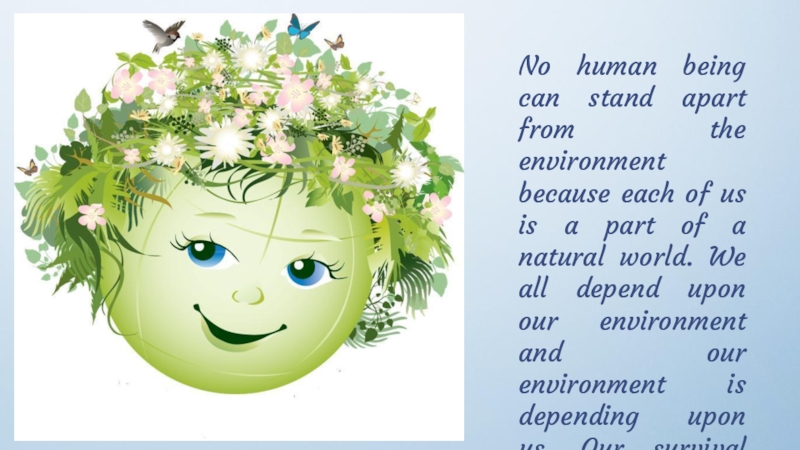 Слайд 14No human being can stand apart from the environment because each