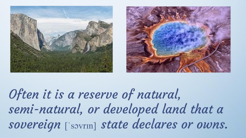 Слайд 11Often it is a reserve of natural, semi-natural, or developed land