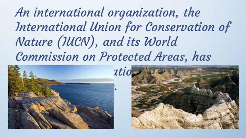 Слайд 13An international organization, the International Union for Conservation of Nature (IUCN),