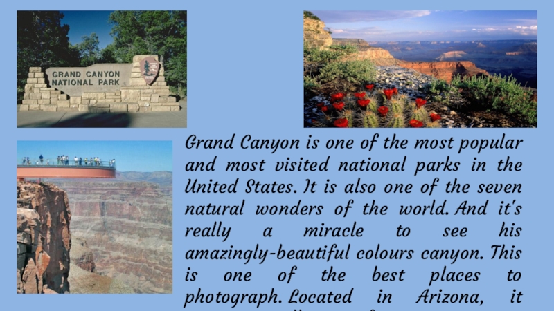 Слайд 21Grand Canyon is one of the most popular and most visited