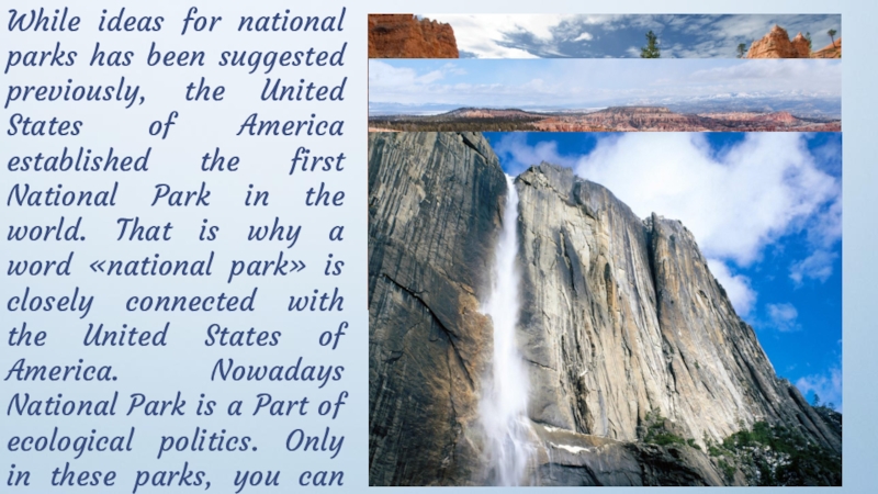 Слайд 18While ideas for national parks has been suggested previously, the United