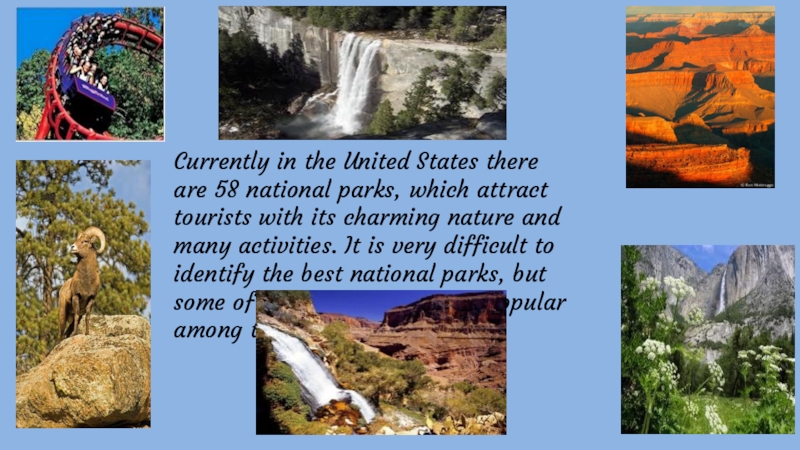 Слайд 19Currently in the United States there are 58 national parks, which