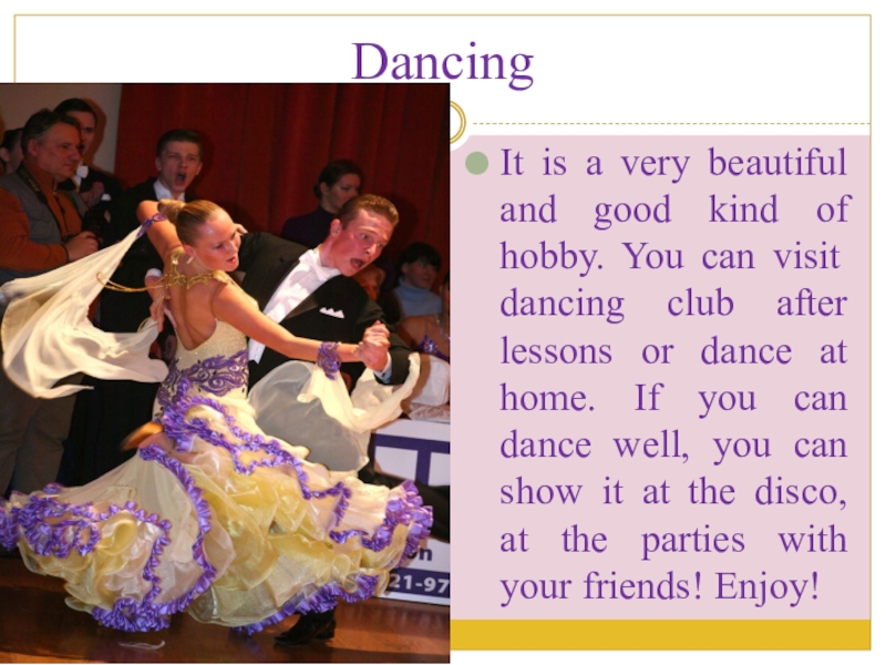 You can visit dancing club after lessons or dance at home. If you can dance well, you can show it at the disco, at the parties with your friends! Enjoy!