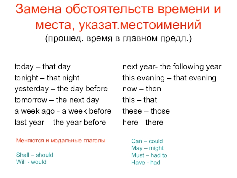 Меняются и модальные глаголы