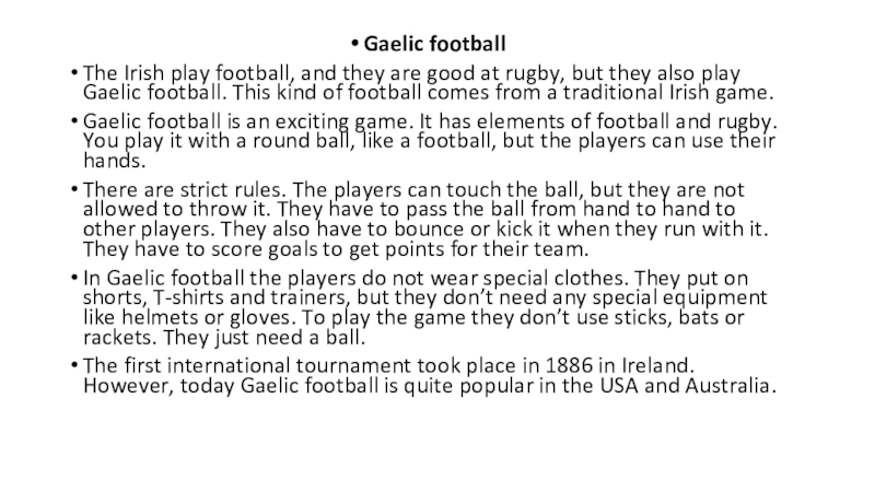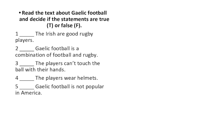 Слайд 4Read the text about Gaelic football and decide if the statements