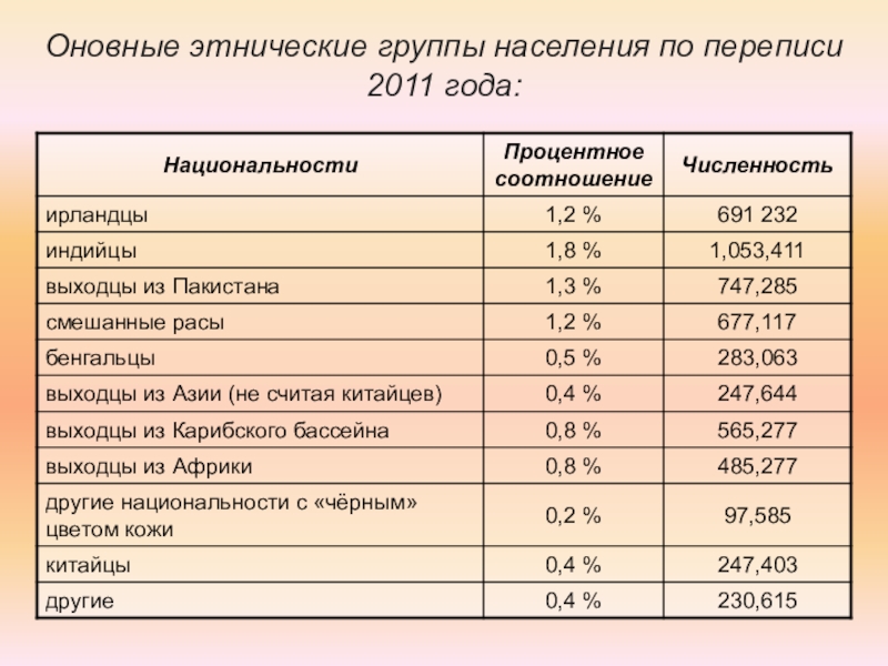 в том числе в Англии – 53,012,456 человек, в Шотландии – 5,295,000 человек, в Уэльсе – 3,063,456 человек, в Северной Ирландии – 1,810,863 человек.