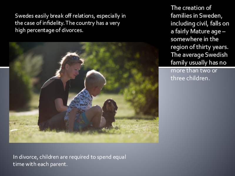 Swedes easily break off relations, especially in the case of infidelity. The country has a very high percentage of divorces.