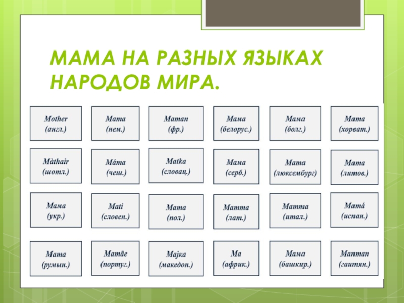 Слайд 8МАМА НА РАЗНЫХ ЯЗЫКАХ НАРОДОВ МИРА.
