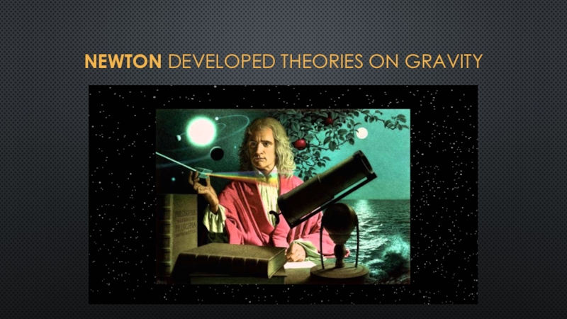 Слайд 19Newton developed theories on gravity
