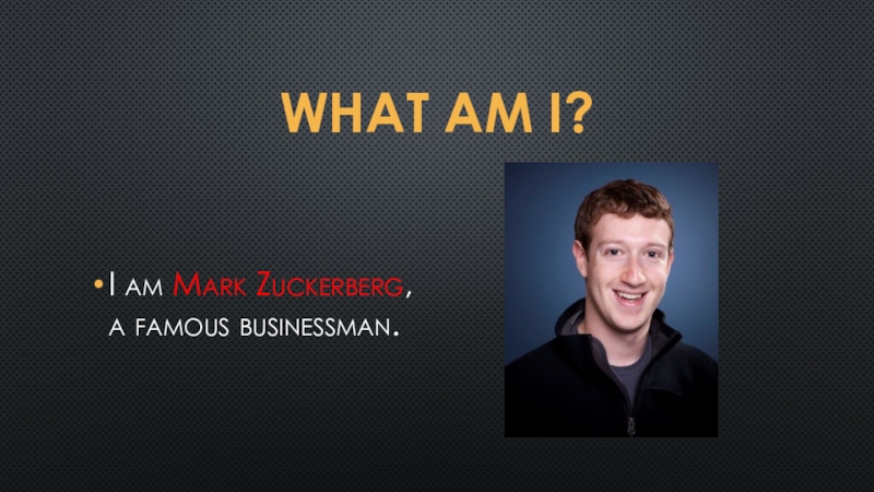 What am i?I am Mark Zuckerberg, a famous businessman.