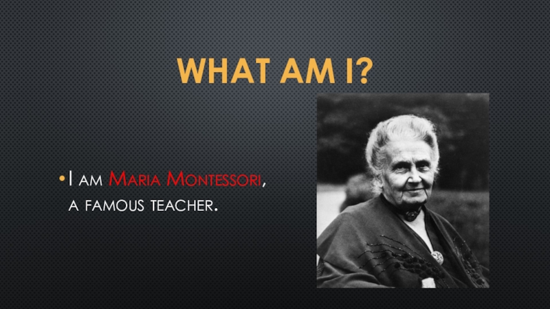 What am i?I am Maria Montessori, a famous teacher.