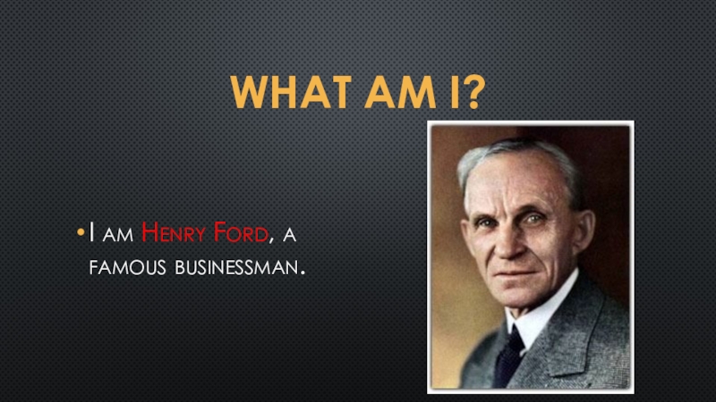 What am i?I am Henry Ford, a famous businessman.