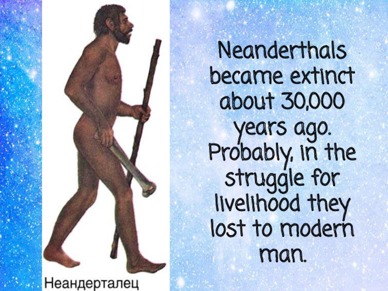 Слайд 6Neanderthals became extinct about 30,000 years ago. Probably, in the struggle