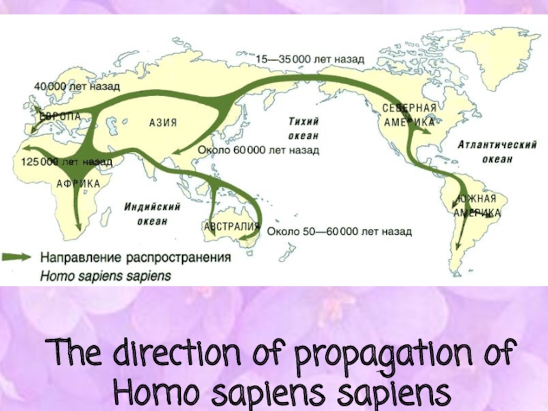 Слайд 8The direction of propagation of Homo sapiens sapiens