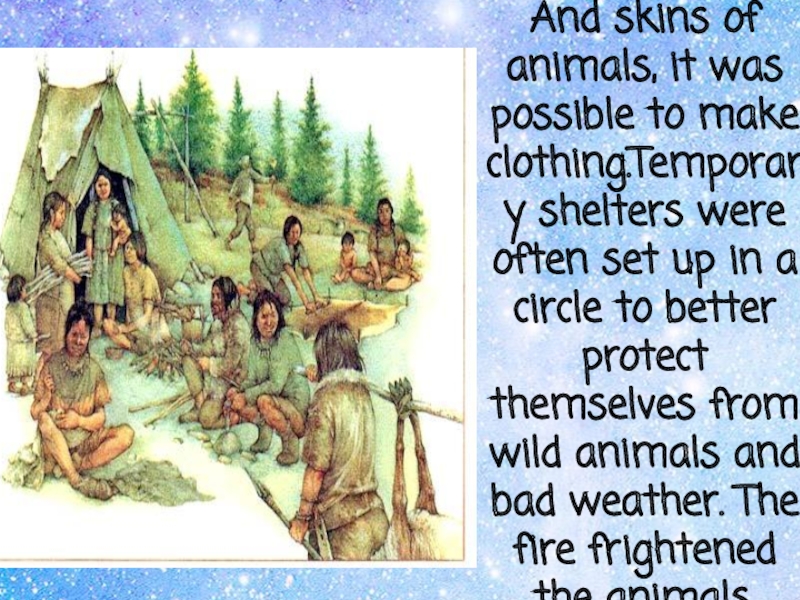 Слайд 13And skins of animals, it was possible to make clothing.Temporary shelters