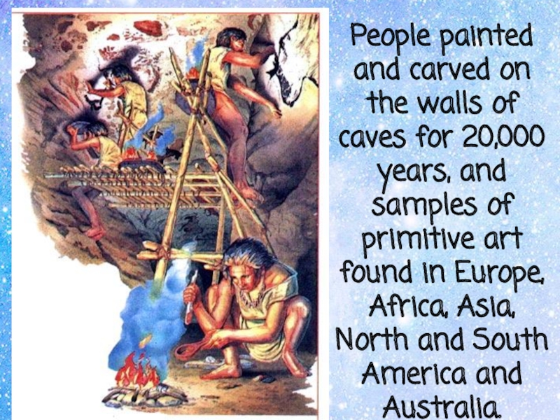 Слайд 9People painted and carved on the walls of caves for 20,000
