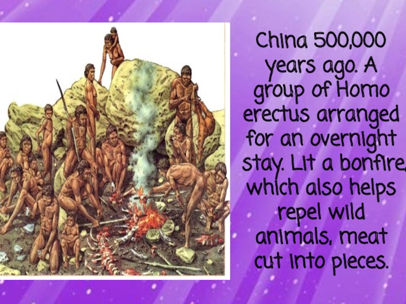 Слайд 5China 500,000 years ago. A group of Homo erectus arranged for