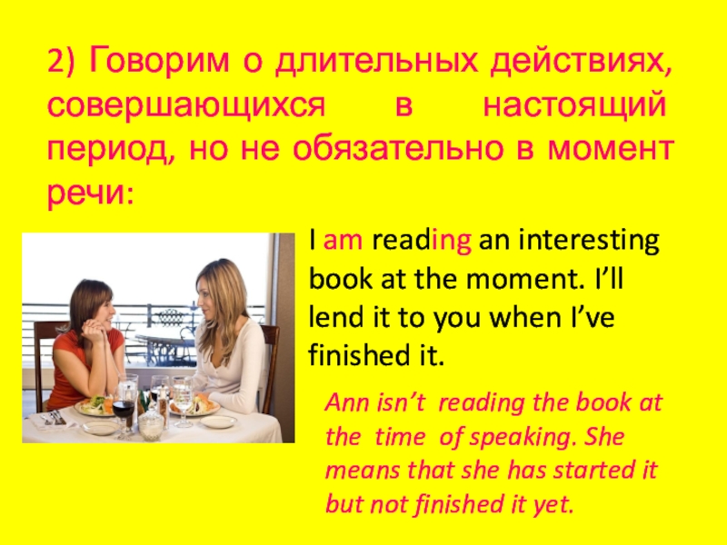 Ann isn’t reading the book at the time of speaking. She means that she has started it but not finished it yet.