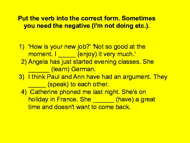 'How is your new job?' 'Not so good at the moment. I _____ (enjoy) it very much.‘