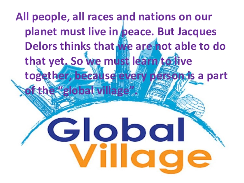 in peace. But Jacques Delors thinks that we are not able to do that yet. So we must learn to live together, because every person is a part of the “global village”.