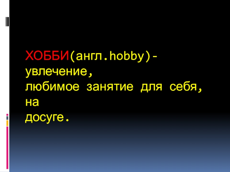 Слайд 2ХОББИ(англ.hobby)-увлечение, любимое занятие для себя, на досуге.