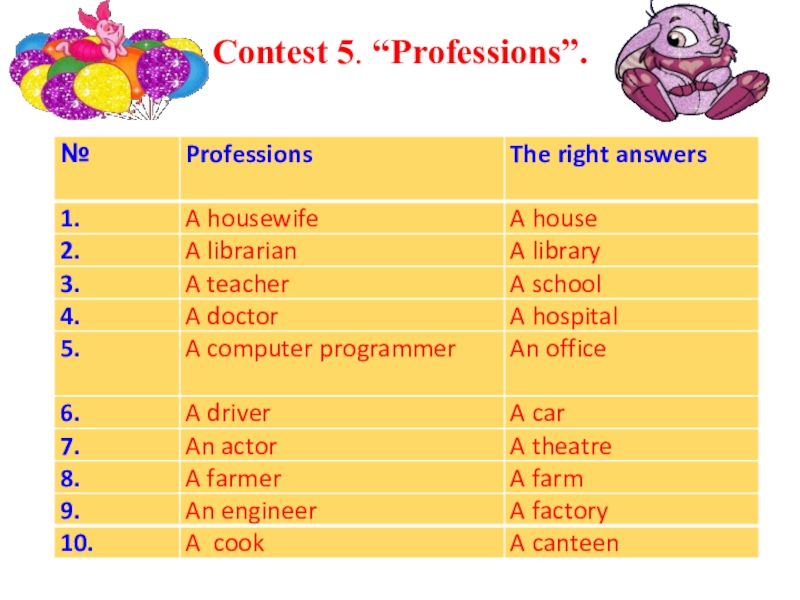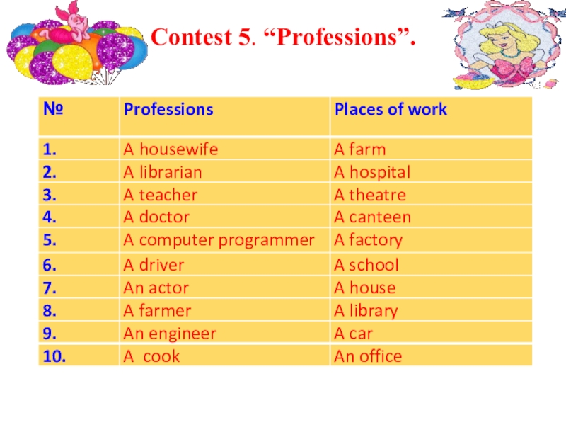 Слайд 6Contest 5. “Professions”.