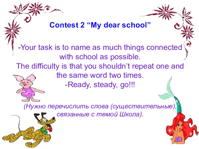things connected with school as possible. The difficulty is that you shouldn’t repeat one and the same word two times. -Ready, steady, go!!!
