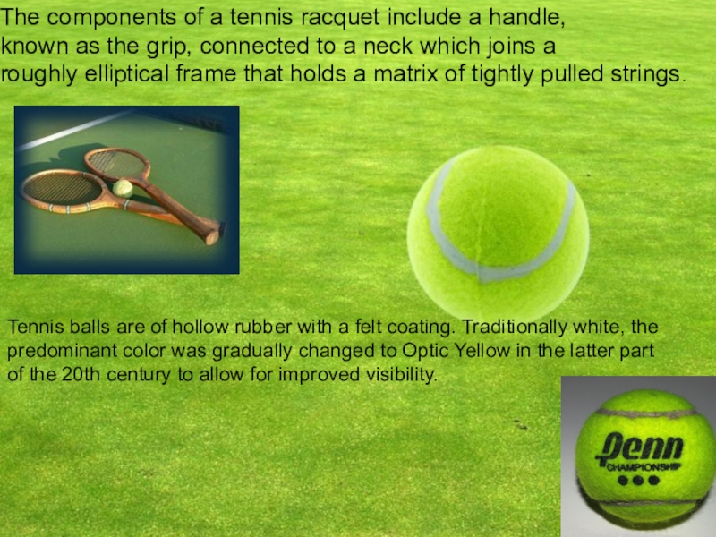 Tennis balls are of hollow rubber with a felt coating. Traditionally white, the