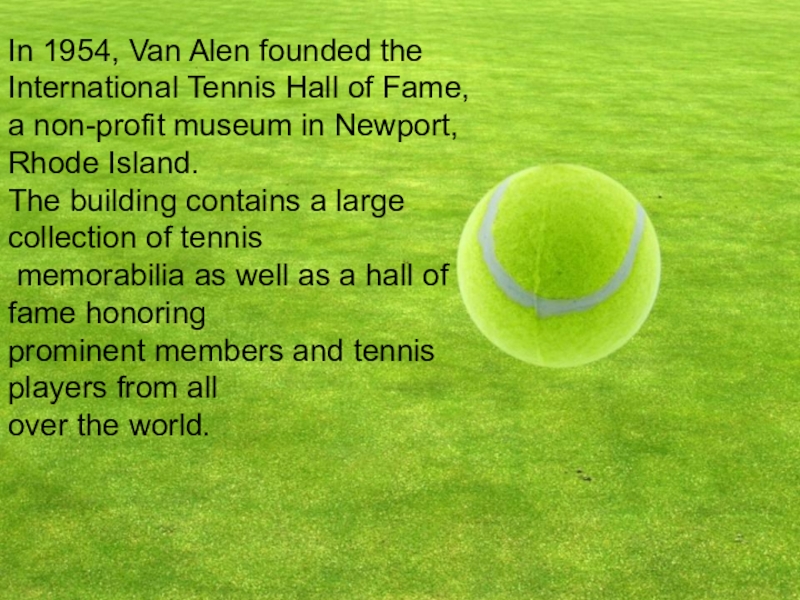In 1954, Van Alen founded the International Tennis Hall of Fame,