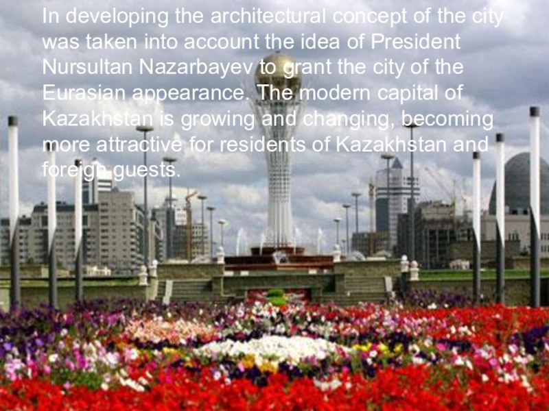 account the idea of President Nursultan Nazarbayev to grant the city of the Eurasian appearance. The modern capital of Kazakhstan is growing and changing, becoming more attractive for residents of Kazakhstan and foreign guests.