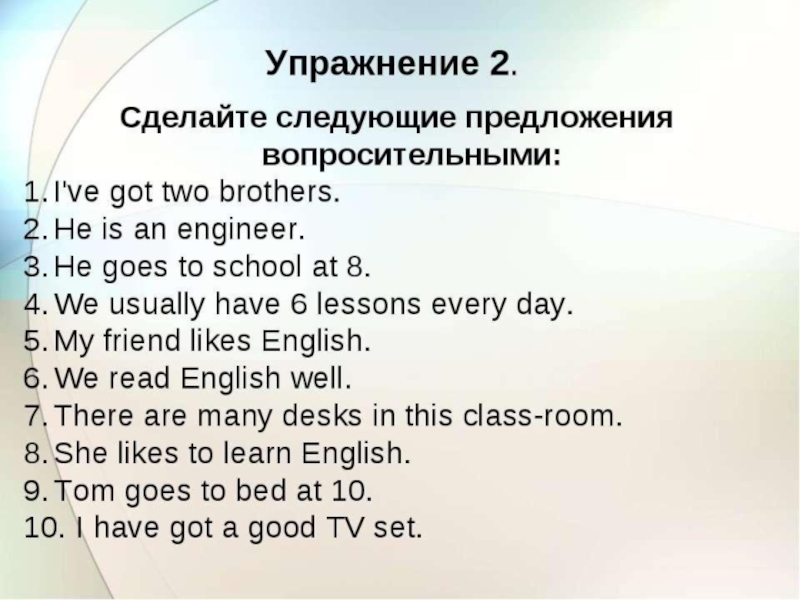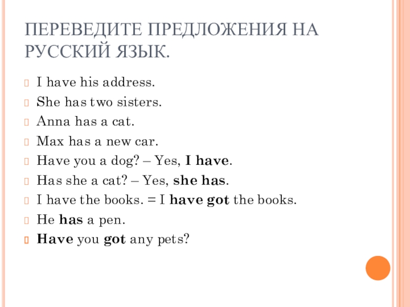 ПЕРЕВЕДИТЕ ПРЕДЛОЖЕНИЯ НА РУССКИЙ ЯЗЫК.