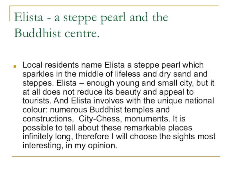 Слайд 2Elista - a steppe pearl and the Buddhist centre.
