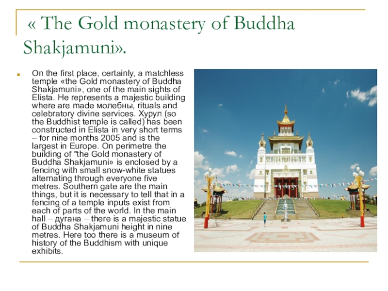 Слайд 3 « The Gold monastery of Buddha Shakjamuni».