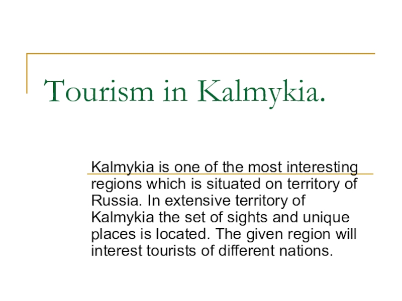 is situated on territory of Russia. In extensive territory of Kalmykia the set of sights and unique places is located. The given region will interest tourists of different nations.