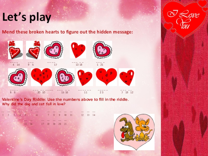 Valentine’s Day Riddle: Use the numbers above to fill in the riddle.