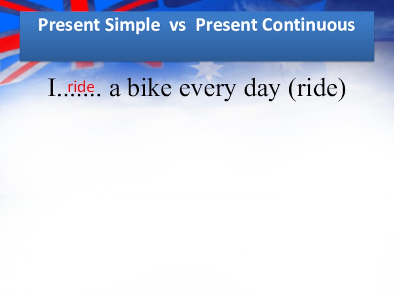 Present Simple vs Present Continuous I....... a bike every day (ride)ride