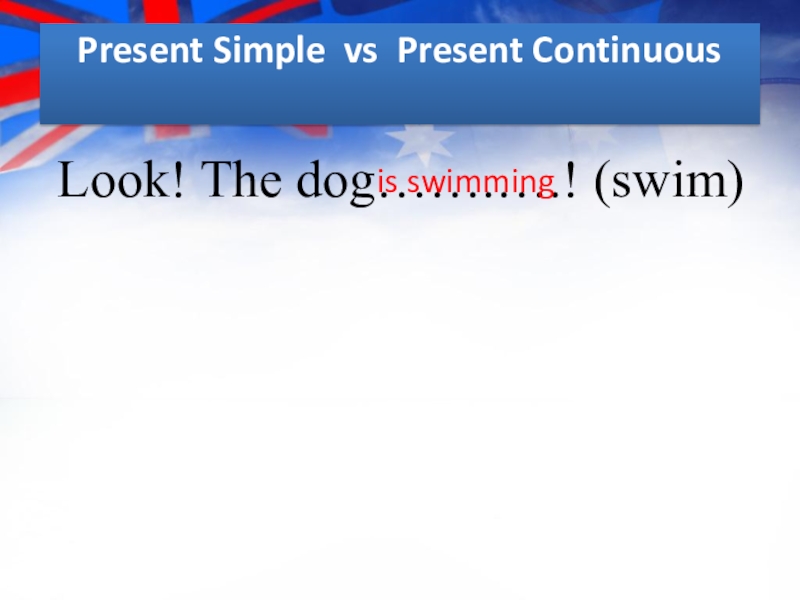 Present Simple vs Present Continuous Look! The dog…….….! (swim)is swimming