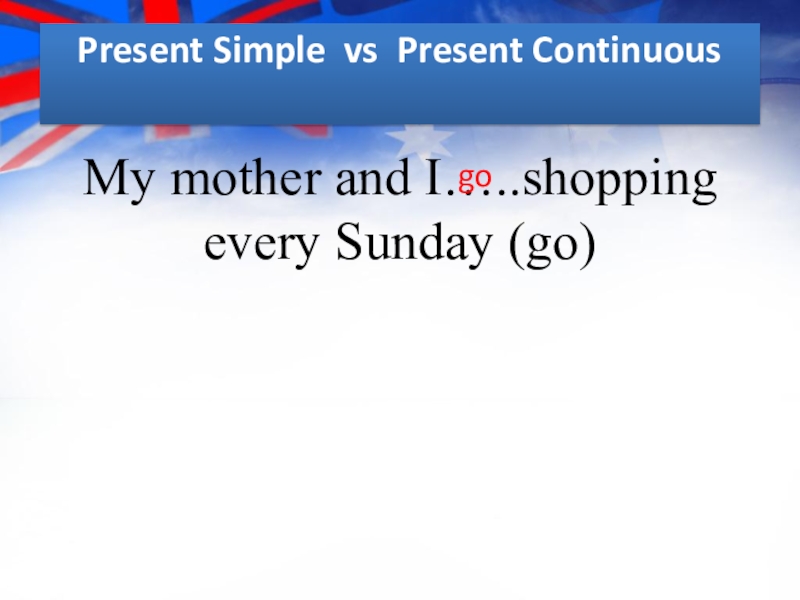 Present Simple vs Present Continuous My mother and I…..shopping every Sunday (go)go