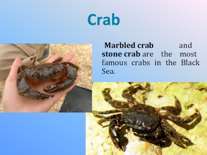 Marbled crab and stone crab are the most famous crabs in the Black Sea.