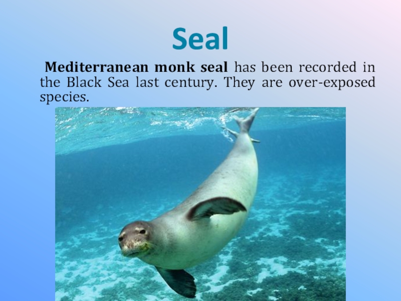 Seal	Mediterranean monk seal has been recorded in the Black Sea last century. They are over-exposed species.