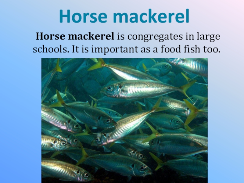 Horse mackerel	Horse mackerel is congregates in large schools. It is important as a food fish too.