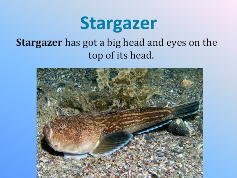 StargazerStargazer has got a big head and eyes on the top of its head.