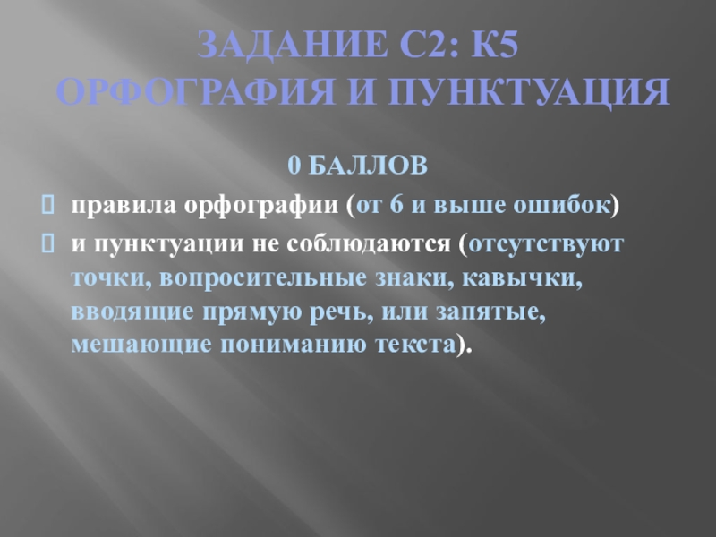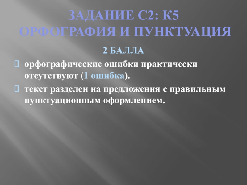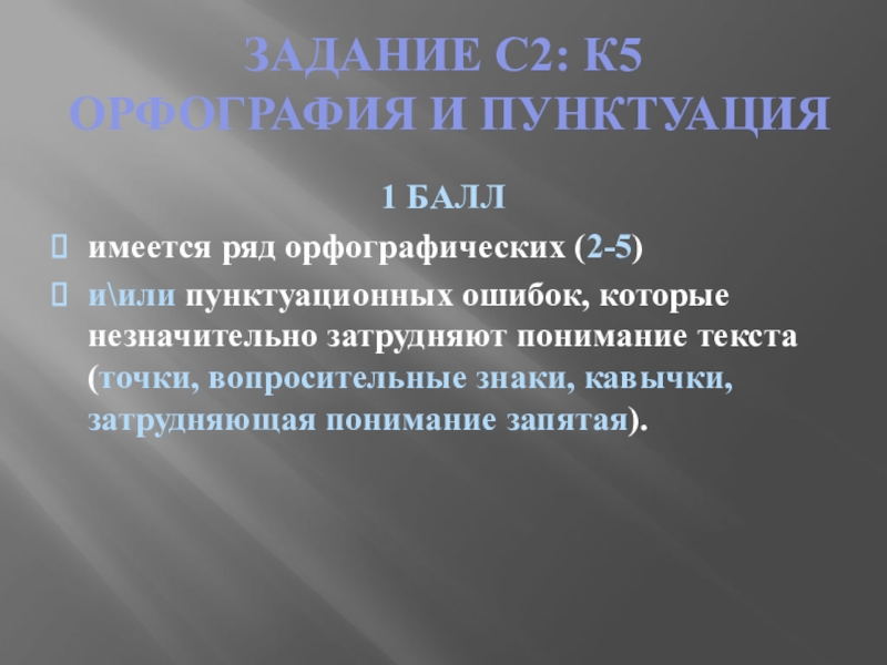 Критерий К5 (орфография и пунктуация) – максимум 2 балла
