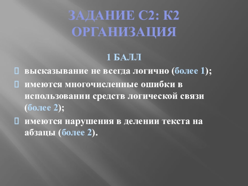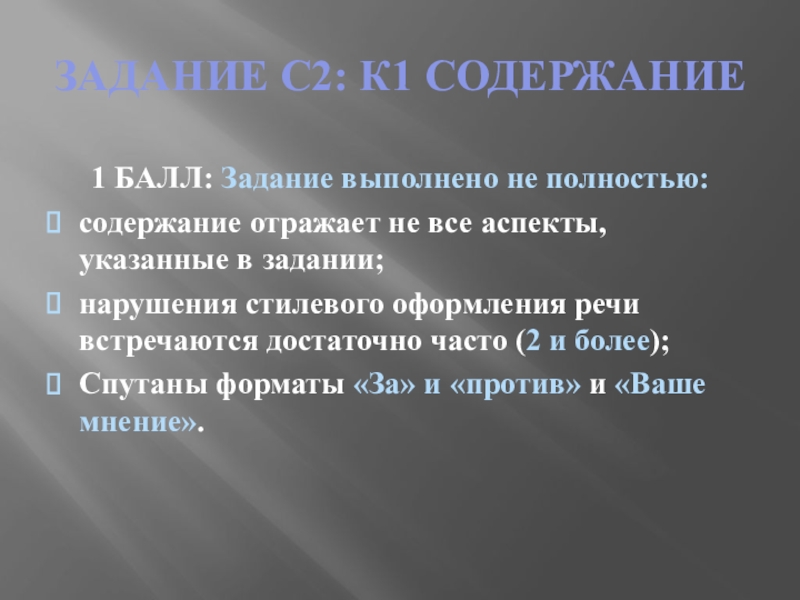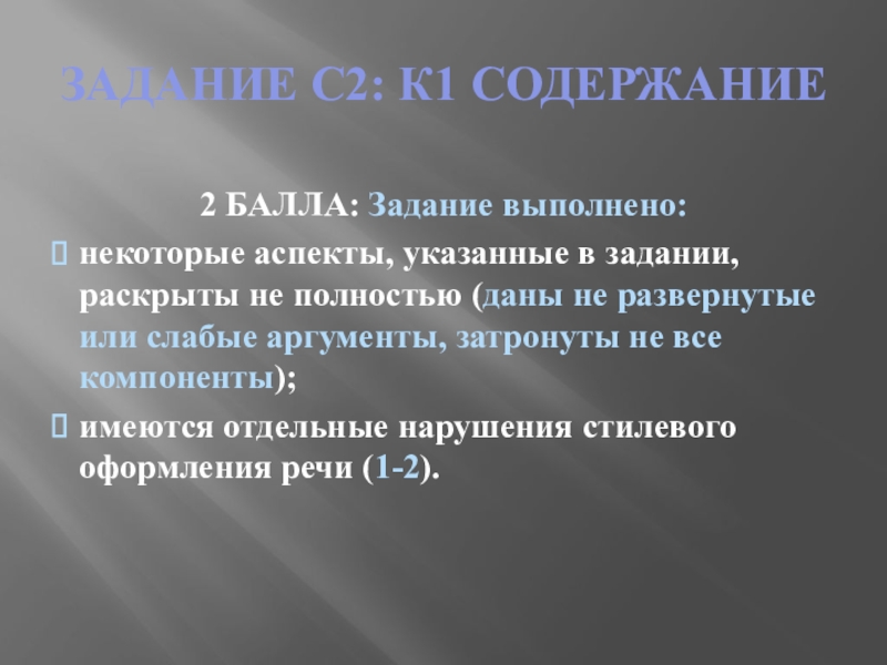 Слайд 18ЗАДАНИЕ С2: К1 СОДЕРЖАНИЕ