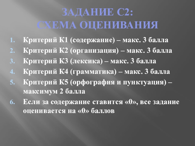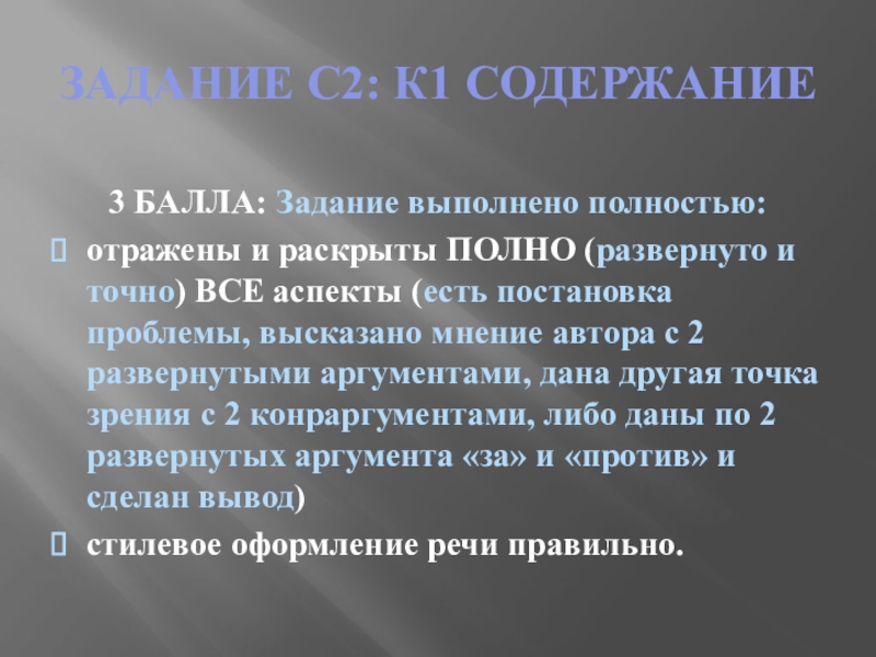 Слайд 20ЗАДАНИЕ С2: К1 СОДЕРЖАНИЕ